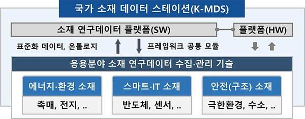 K-MDS 서비스는 부처·사업·연구자별로 흩어져 관리되는 소재 연구데이터를 통합적으로 수집하고 공유해 인공지능 기반의 신소재 발굴 및 개발 기간 단축 등에 활용하는 것을 목표로 한다.