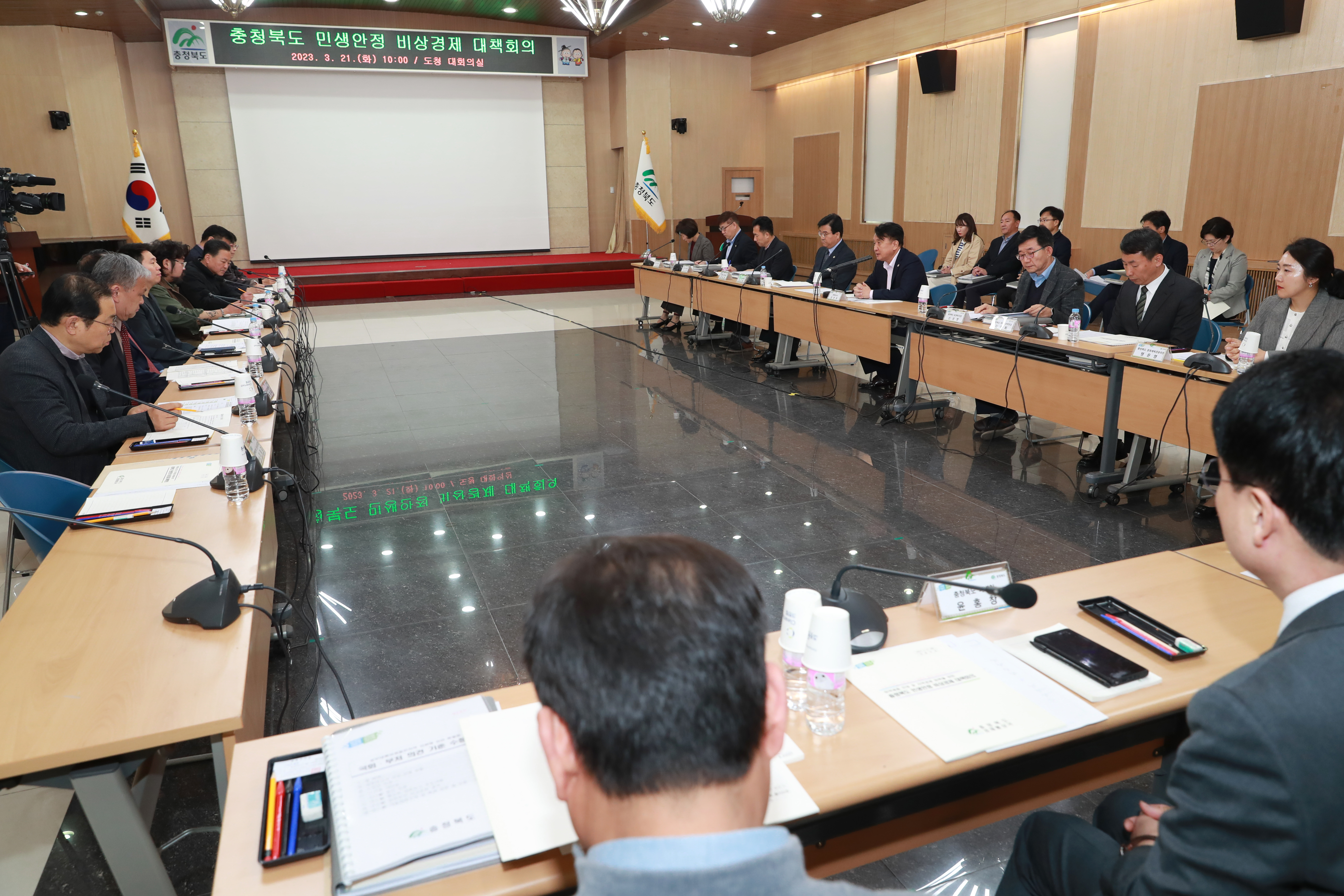 충청북도는 3월 21일 10시 도청 대회의실에서 김영환 도지사 주재로 민생 및 경제 관련 실?국장과 주요 경제 기관·단체장 등 20여명이 참석한 가운데 ‘충청북도 민생안정 비상경제 대책회의’를 개최했다.