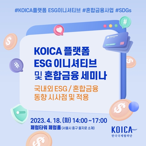 코이카(KOICA, 한국국제협력단)는 오는 18일 오후 2시부터 5시까지 서울 중구 페럼타워 페럼홀에서 '국내외 ESG/혼합금융 동향 시사점 및 적용'을 부제로 'KOICA 플랫폼 ESG 이니셔티브 및 혼합금융 세미나'를 개최한다.