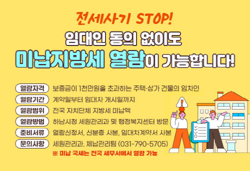 경기 하남시는 지방세관계법 개정에 따라 지난 4월부터 임대인 미납지방세 열람제도를 확대 시행하고 있다고 2일 밝혔다.