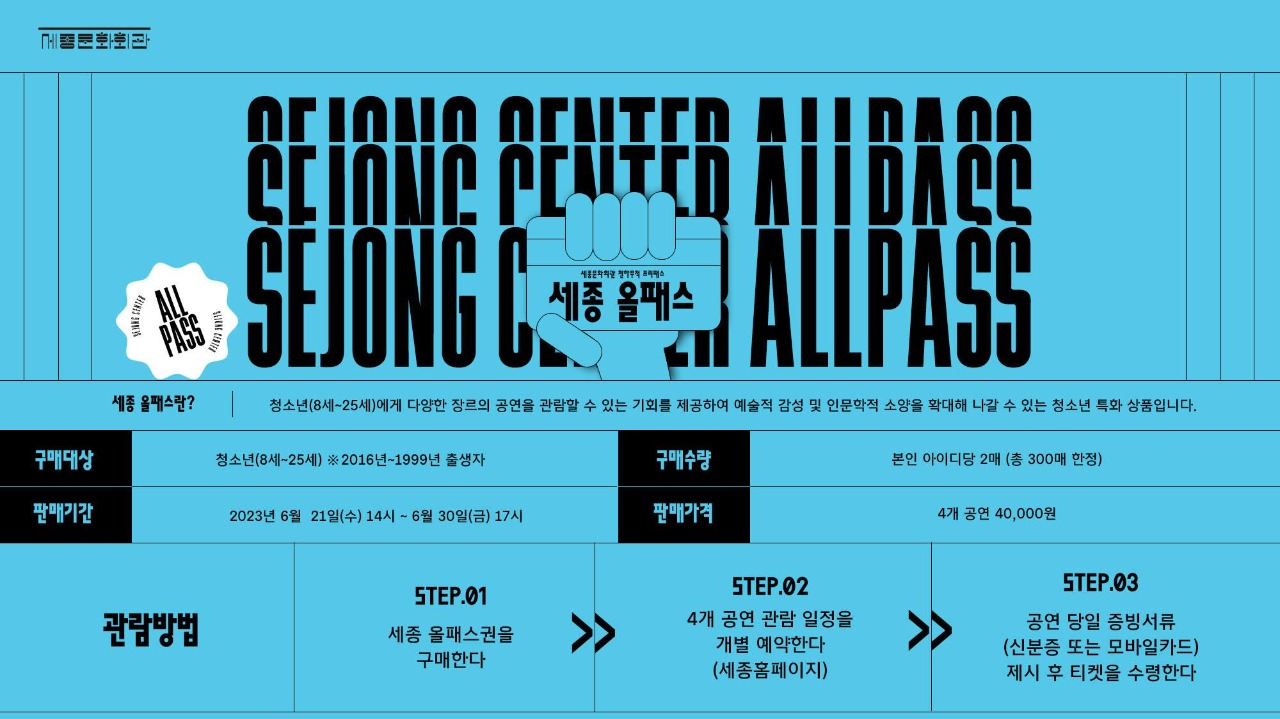 공연을 좋아하는 청소년을 위한 특별한 공연 혜택 <2023 세종 올패스)