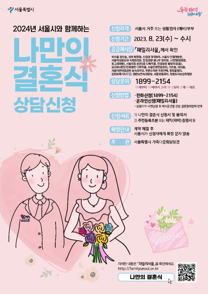 - 8.23.(수)부터 신청시작… 전화(☎1899-2154) 상담 또는 ‘패밀리서울’ 온라인상담