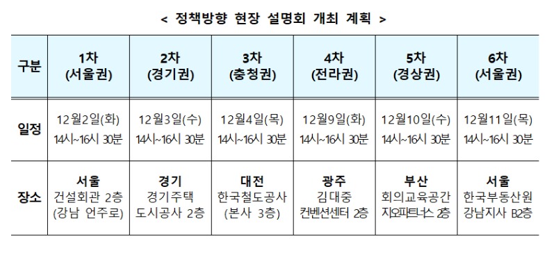한편, 정비사업을 추진하고자 하는 주민을 위한 정책방향 현장 설명회는 12월 2일(화) 서울을 시작으로 총 6차례 실시할 예정이다.