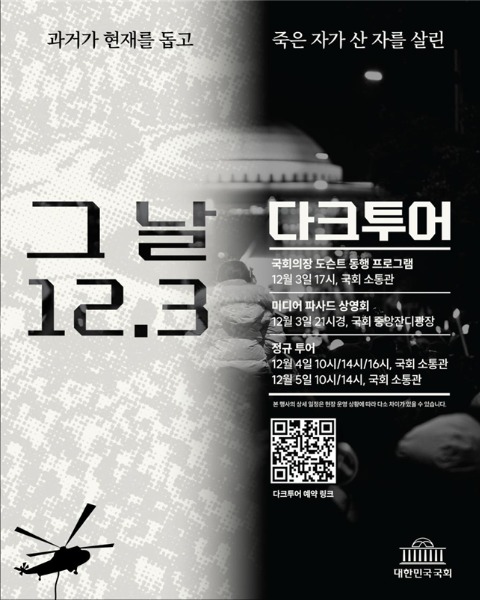국회사무처(사무총장 김민기)는 비상계엄 해제 1주년을 맞아 「그 날 12.3 다크투어」를 12월 3일부터 5일까지 개최한다.