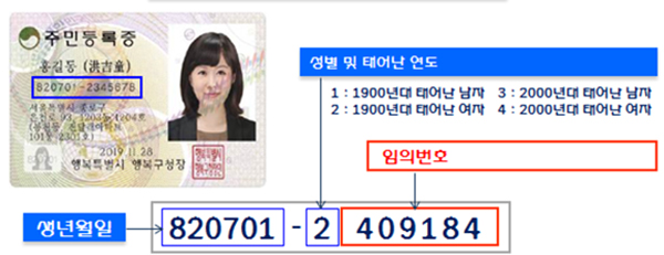 10월부터 45년만에 주민등록번호 부여체계가 바뀌면서 지역번호를 폐지하고 뒷자리 성별 뒤 6자리에 임의번호를 부여한다.