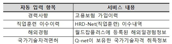 그동안 이용자가 워크넷에서 이력서를 작성하면 경력사항과 직업훈련 이수이력, 해외경험 정보를 불러와 자동으로 입력할 수 있었다.