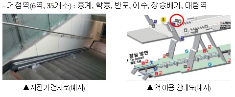 일반 이용객의 불편을 최소화 하기 위해 2~3 정거장 당 1개역씩 거점역을 지정하여 자전거 이용자 편의제고를 위한 각종 편의시설 (자전거 경사로, 픽토그램, 거치대 등)을 개선할 예정이다.