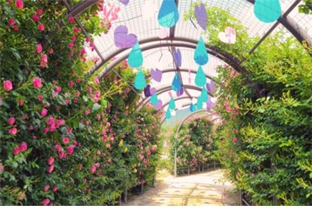 테마가든으로 가는 펜스 300m에는 2019년에 심은 덩굴장미 ‘스칼렛 메이딜란드’와 ‘안젤라’, ‘하루가제’가 송이송이 피어 화려한 장미 산책로를 걸을 수 있다.