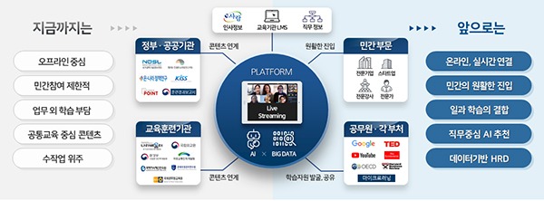 나아가 민간 콘텐츠를 포함해 대폭 증가한 학습 자원을 바탕으로 인공지능 등의 기술을 통해 공무원 개인별 직무와 경력 등에 맞는 최적의 콘텐츠를 추천받을 수 있다.