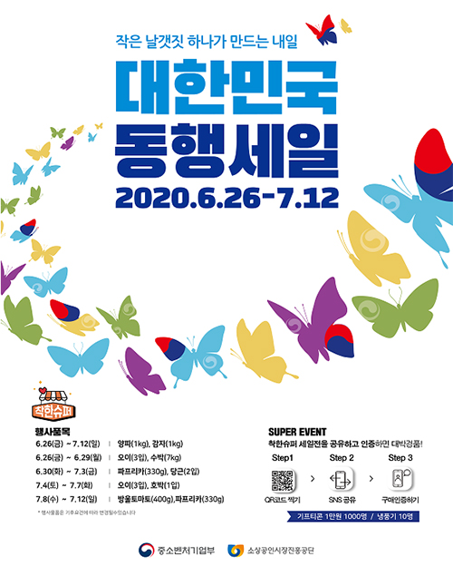 박은주 중기부 소상공인경영지원과장은 “‘대한민국 동행세일’은 동네슈퍼들이 ‘착한슈퍼, 착한가격’ 이미지를 소비자들에게 심어줄 수 있는 좋은 기회”라며 “동네슈퍼의 자발적 참여를 장려해 ‘대한민국 동행세일’에 소상공인과의 적극적 동행의 장을 마련해 나가겠다”고 밝혔다.