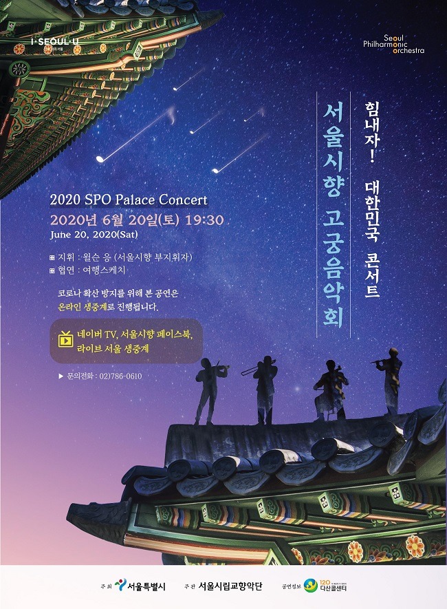 서울시는 코로나19 장기화로 지친 시민과 의료진을 위로하는 <힘내자! 대한민국 콘서트>를 개최한다. 첫 공연으로 6월 20일(토) 저녁 7시 30분 ‘서울시향 고궁음악회’가 온라인 생중계 되어 클래식부터 대중가요까지 다양한 음악을 선사할 예정이다.