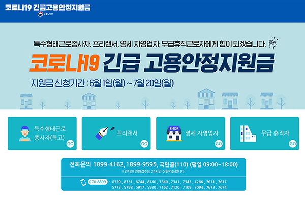 물론 오프라인 신청이 시작되더라도 7월 20일까지 전용 홈페이지(http://covid19.ei.go.kr)를 통한 온라인 신청은 계속해서 가능하다.