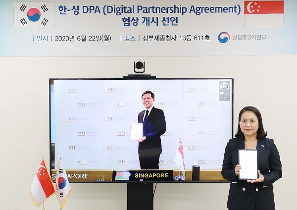 유명희 산업통상자원부 통상교섭본부장과 찬춘싱(Chan Chun Sing) 싱가포르 통상산업부 장관은 22일 화상 회의를 통해 한-싱 디지털동반자협정(Korea-Singapore Digital Partnership Agreement, 이하 ‘KSDPA’)의 협상 개시를 공식 선언했다.