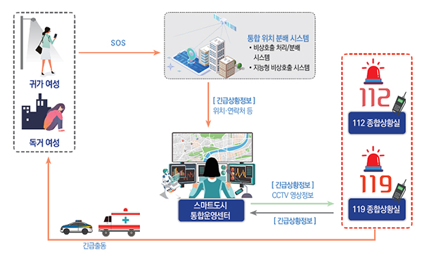 이를 통해 지자체에 구축된 스마트시티센터를 중심으로 CCTV와 여성안심앱, 112·119 상황실을 연계한다.