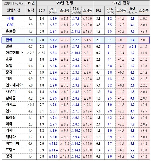 기획재정부는 “코로나19 발생 전인 지난 1월 전망 대비 조정폭도 선진국 중 가장 작은 수준”이라고 밝혔다.