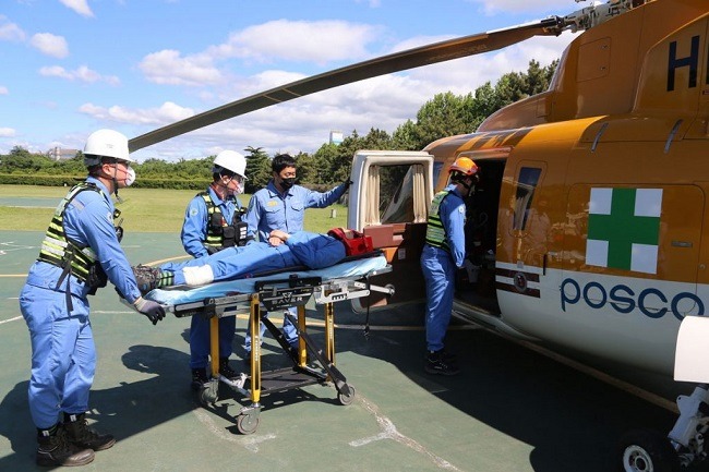 포스코가 제철소 및 그룹사, 협력사 사업장 내 안전사고 발생 시 자사 보유 헬기로 응급환자를 이송할 수 있는 체계를 마련했다.