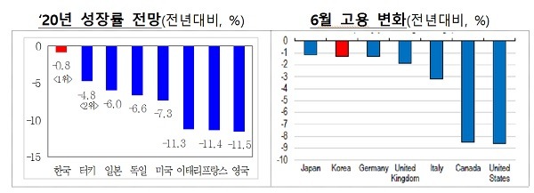 OECD는 “한국이 일체의 봉쇄조치 없이 방역 성과를 거두면서 경제적 피해를 최소화했다”며 “신속하고 효과적인 정책대응에 힘입어 다른 회원국에 비해 고용·성장률 하락폭이 매우 작은 수준”이라고 진단했다.