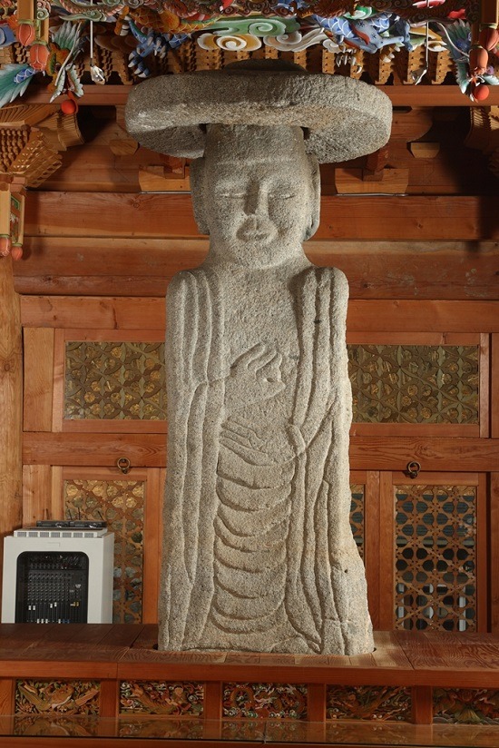 ‘양평 불곡리 석조여래입상’은 양평군 불곡리에서 발견된 석불로 3m 높이의 큰 돌기둥 같은 신체에 보개(불상의 머리 위를 가리는 덮개)를 쓰는 형태로 조성됐다. 머리 부분의 원형보개는 머리에 얹은 것이 아니라 끼우는 형식으로 제작했으며 두 발을 좌우로 벌린 모습은 고려 말 경기도에서 유행한 불상 전통을 보여준다. 한편 법의를 걸친 형식과 옷주름의 거친 표현, 배 아래로 완만한 U형의 주름이 늘어지는 표현상 등은 조선 전기 석불들에서 보이는 표현양식을 가지고 있다.
