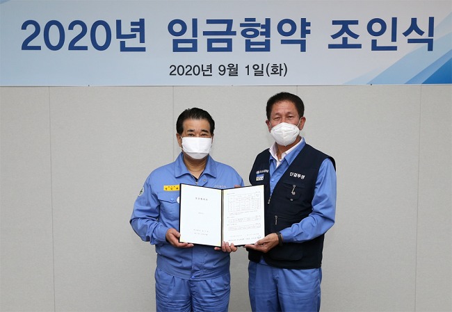 이 외에도, 지난 6월부터 평균임금의 70%를 지급하는 휴업을 실시하고 있으나, 최근 주문량 회복에 따라 휴지 개소가 감소하고 있고 경영위기 극복 최전선에 있는 직원들의 노고를 고려하여 휴업을 중단키로 했다. 포스코 노사는 9.1 (화) 포항 본사에서 2020년 임금협약 체결을 위한 조인식을 개최할 예정이다.