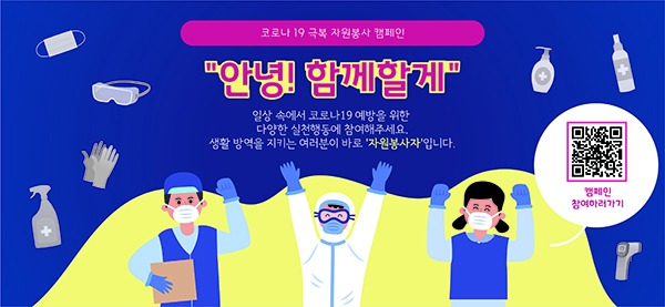 ‘안녕! 함께할게’ 캠페인은 행안부와 전국 246개 자원봉사센터가 함께 하는 캠페인으로, 참여를 원하는 국민은 인터넷 검색창에 “안녕캠페인(http://v-reaction.net)”을 검색해 접속하면 된다.