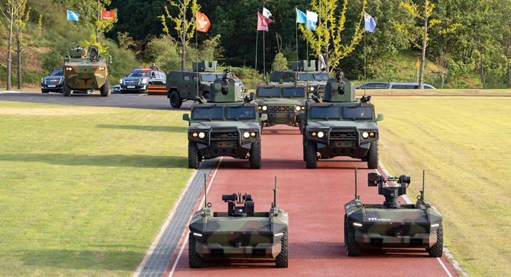 현대로템이 개발한 첨단 무인차량이 국군의 날 기념행사에서 경호경비 임무를 성공적으로 수행했다.