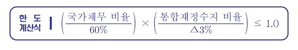 이에따라 정부는 국가채무 비율은 60%, 통합재정수지 -3%를 기준으로 하되, 하나의 지표가 기준치를 초과하더라도 다른 지표가 기준치를 하회하면 충족이 가능하도록 상호 보완적으로 설계했다.