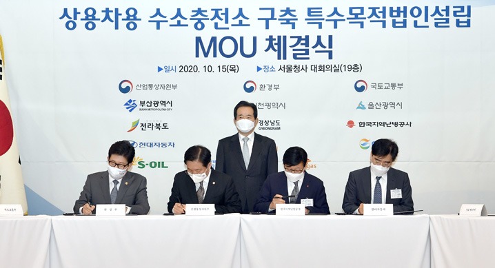협약식에 참석한 산업통상자원부와 환경부, 국토교통부 등의 정부 기관은 그린 뉴딜의 핵심인 무공해 수소 버스와 트럭의 보급 확산을 위한 정책적·재정적 지원을 담당할 예정이며, 부산광역시와 인천광역시, 울산광역시와 전라북도, 경상남도 등의 지방자치단체는 수소 충전소 부지를 제공하고 이를 위한 행정적 지원을 담당하게 된다.