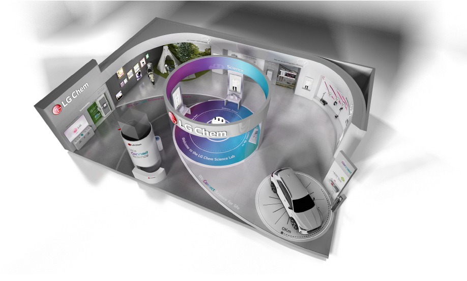 LG화학은 참가업체 중 최대 규모(315㎡)의 부스에 'We connect science to life for a better future'라는 뉴 비전을 접목했다.
