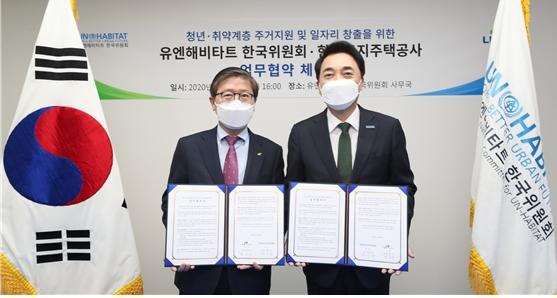 LH는 UN-Habitat 한국위원회와 ‘청년·취약계층의 주거지원 및 일자리 창출을 위한 업무협약’을 체결했다고 27일(금) 밝혔다.